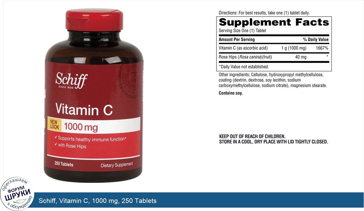 Друзья, если у вас есть отзыв/дополнение/комментарий/вопрос относительно Schiff, Vitamin C, 1000 mg, 250 Tablets - напишите его ответом в эту тему (это будет полезно всему сообществу в целом и вам в отдельности).