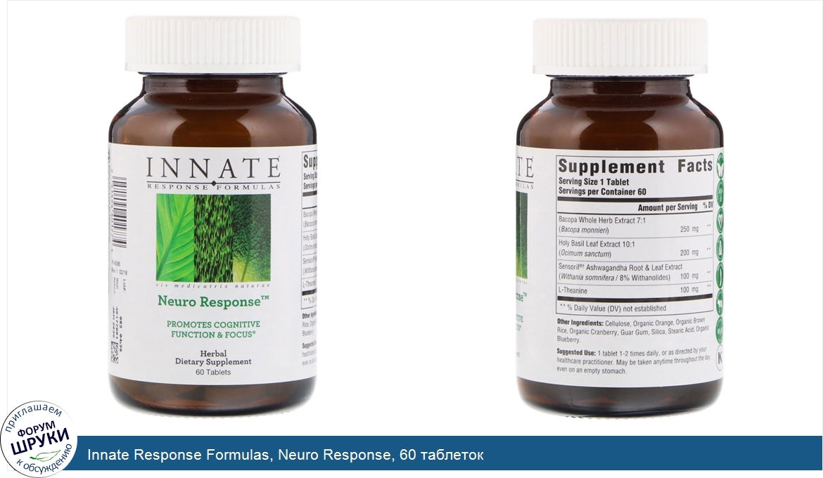 [DESCRIPT]Vis Medicatrix Naturae. Promotes Cognitive Function Focus. Herbal Dietary Supplement. Non-GMO. Tested Gluten Free. Certified Vegan. Pesticides Herbicides Tested Free. Soy Free. Dairy Free. No Magnesium Stearate. Kosher. At Innate Response we share your belief that nothing is more important than supporting your body's innate ability to heal. To that end, we develop nutrient-rich supplements. The Innate Response product is made with carefully selected herbs to deliver a range of health-promoting compounds.[/DESCRIPT]... (описание дополняется)