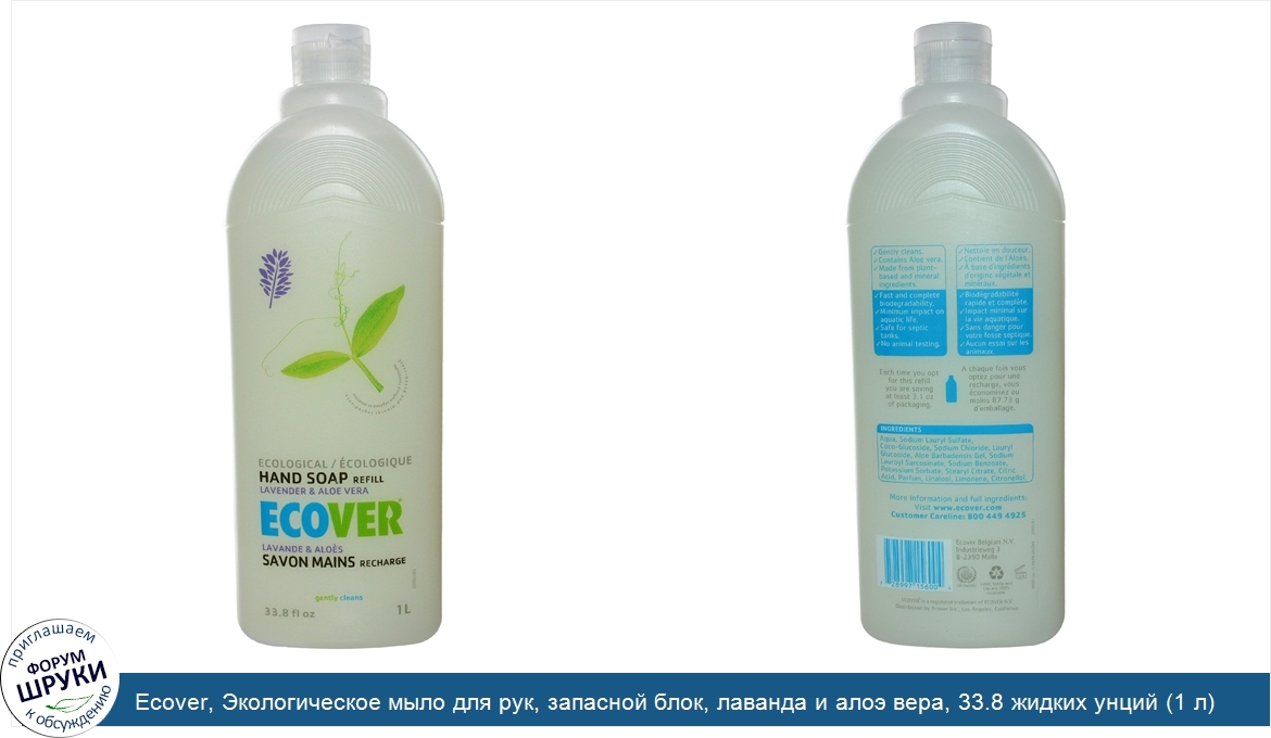 Друзья, если у вас есть отзыв/дополнение/комментарий/вопрос относительно Ecover, Экологическое мыло для рук, запасной блок, лаванда и алоэ вера, 33.8 жидких унций (1 л) - напишите его ответом в эту тему (это будет полезно всему сообществу в целом и вам в отдельности).