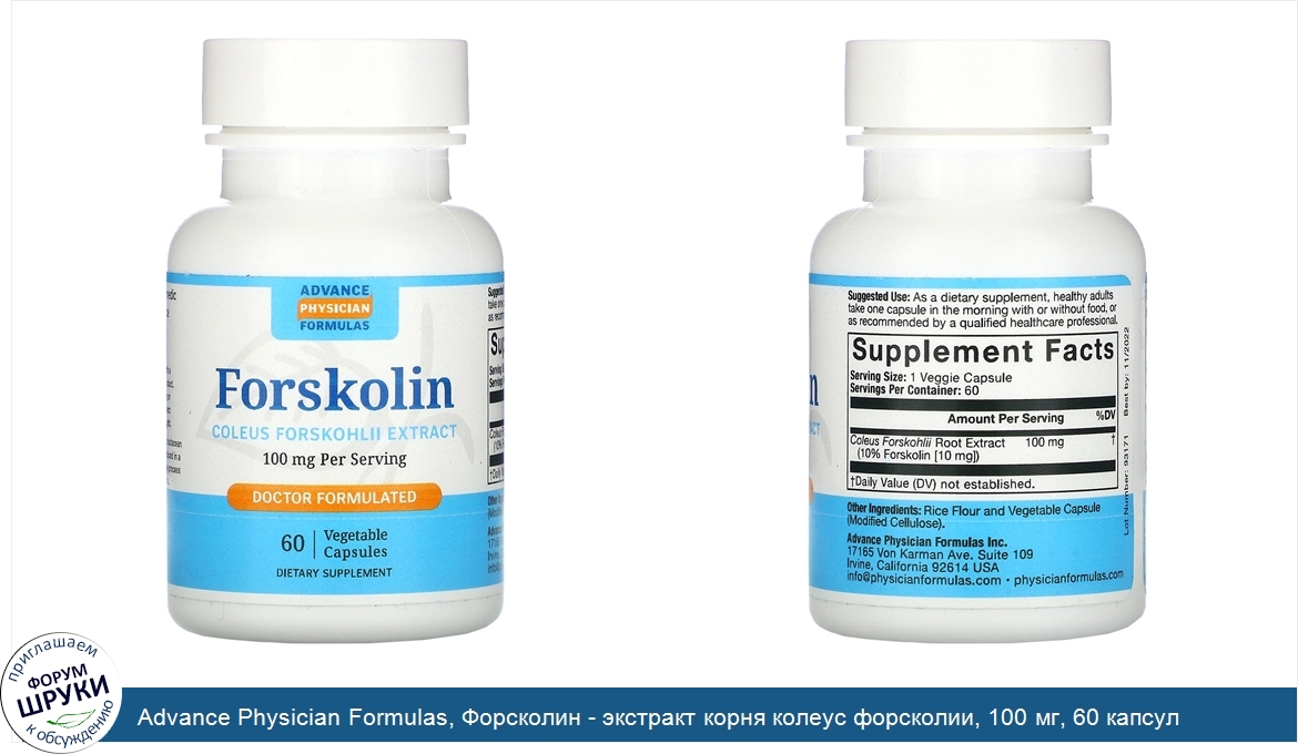 Advance Physician Formulas, Форсколин - экстракт корня колеус форсколии, 100 мг, 60 капсул