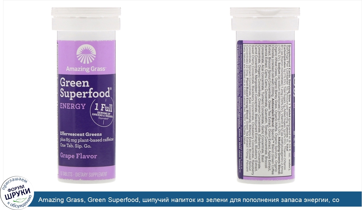 Друзья, если у вас есть отзыв/дополнение/комментарий/вопрос относительно Amazing Grass, Green Superfood, шипучий напиток из зелени для пополнения запаса энергии, со вкусом винограда, 10таблеток - напишите его ответом в эту тему (это будет полезно всему сообществу в целом и вам в отдельности).