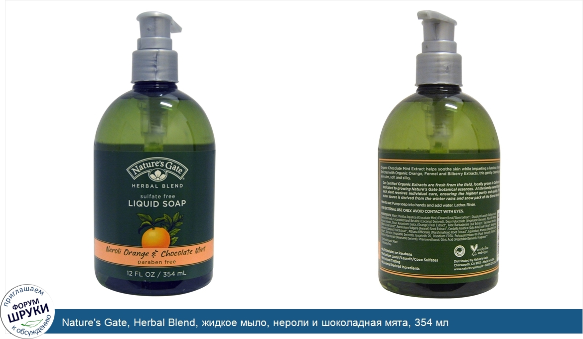 Nature's Gate, Herbal Blend, жидкое мыло, нероли и шоколадная мята, 354 мл