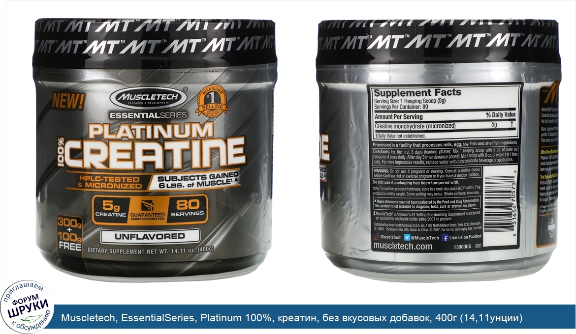 Друзья, если у вас есть отзыв/дополнение/комментарий/вопрос относительно Muscletech, EssentialSeries, Platinum 100%, креатин, без вкусовых добавок, 400г (14,11унции) - напишите его ответом в эту тему (это будет полезно всему сообществу в целом и вам в отдельности).