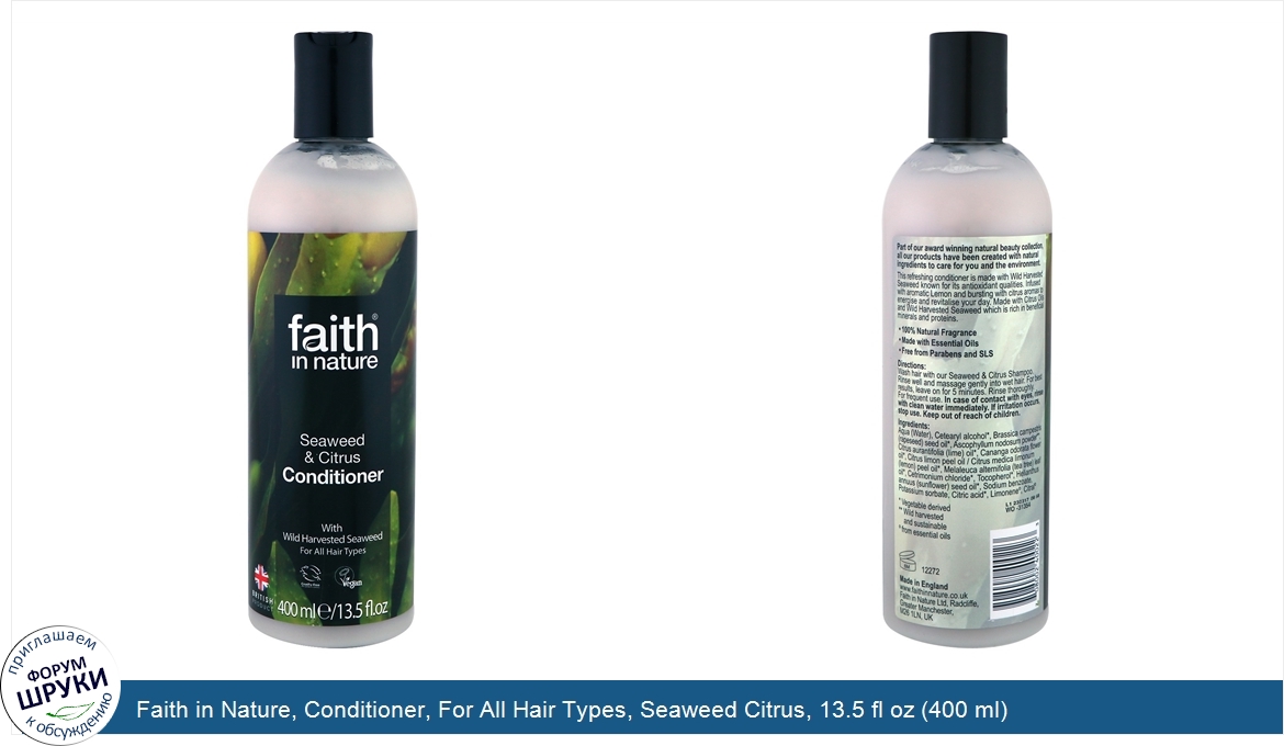 Друзья, если у вас есть отзыв/дополнение/комментарий/вопрос относительно Faith in Nature, Conditioner, For All Hair Types, Seaweed Citrus, 13.5 fl oz (400 ml) - напишите его ответом в эту тему (это будет полезно всему сообществу в целом и вам в отдельности).