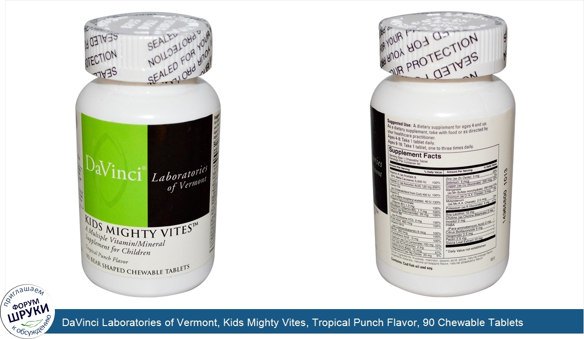 ru DaVinci Laboratories of Vermont, Kids Mighty Vites, Tropical Punch Flavor, 90 Chewable Tablets