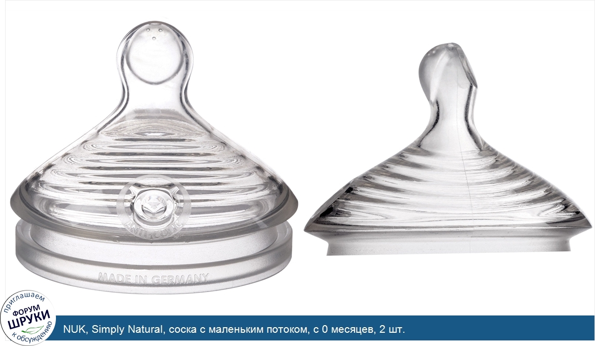 Друзья, если у вас есть отзыв/дополнение/комментарий/вопрос относительно NUK, Simply Natural, соска с маленьким потоком, с 0 месяцев, 2 шт. - напишите его ответом в эту тему (это будет полезно всему сообществу в целом и вам в отдельности).