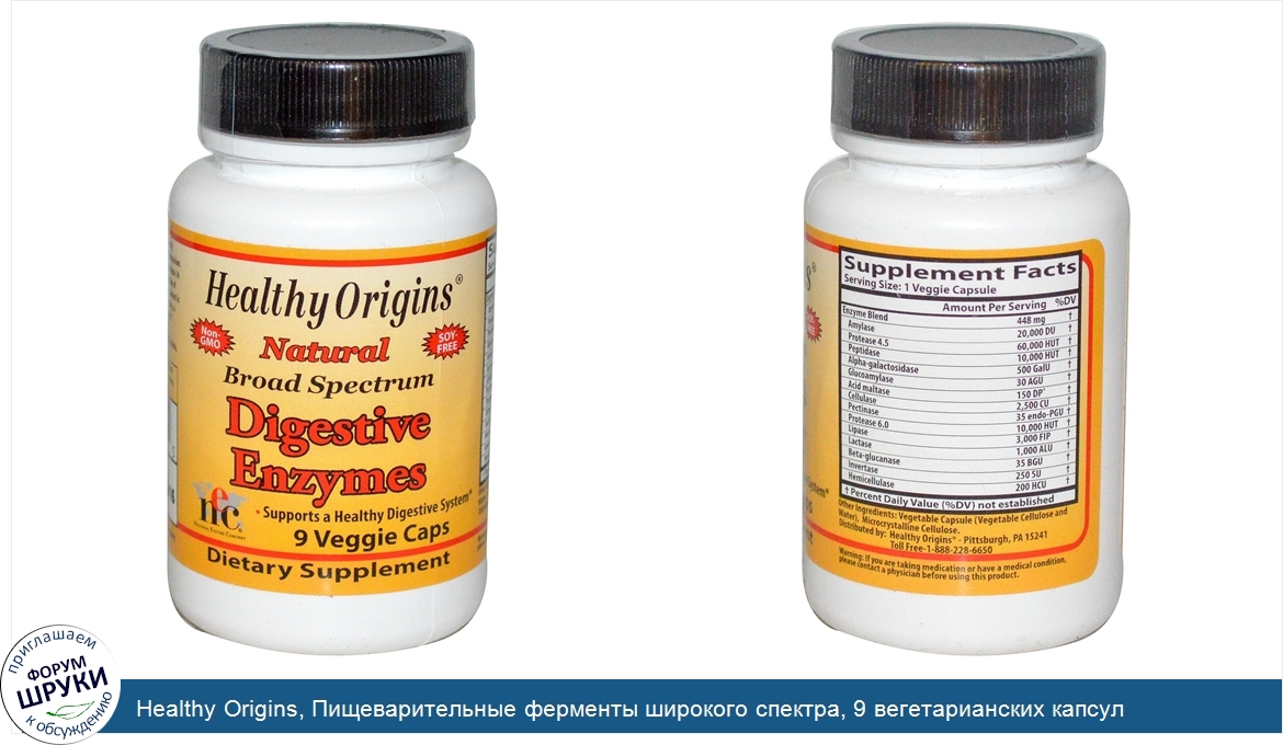 Healthy Origins, Пищеварительные ферменты широкого спектра, 9 вегетарианских капсул