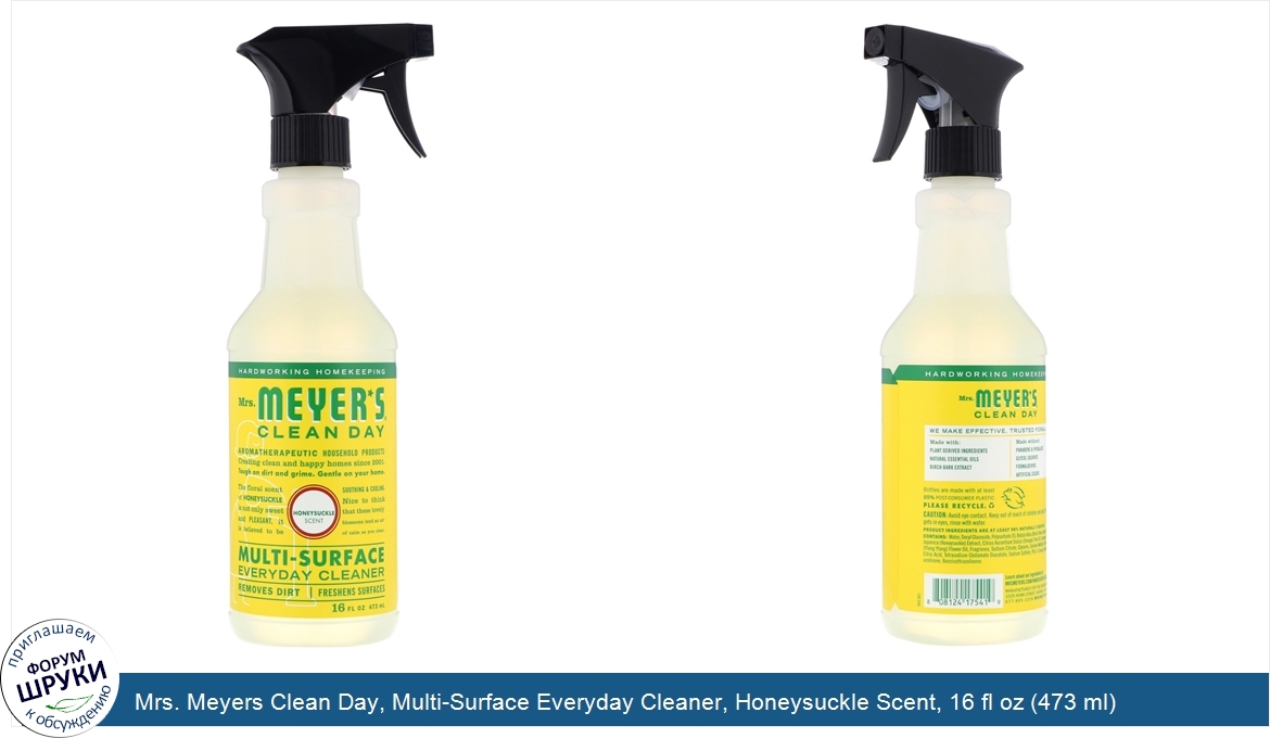 Друзья, если у вас есть отзыв/дополнение/комментарий/вопрос относительно Mrs. Meyers Clean Day, Multi-Surface Everyday Cleaner, Honeysuckle Scent, 16 fl oz (473 ml) - напишите его ответом в эту тему (это будет полезно всему сообществу в целом и вам в отдельности).