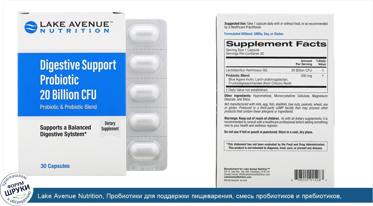 Друзья, если у вас есть отзыв/дополнение/комментарий/вопрос относительно Lake Avenue Nutrition, Пробиотики для поддержки пищеварения, смесь пробиотиков и пребиотиков, 20млрд КОЕ, 30капсул - напишите его ответом в эту тему (это будет полезно всему сообществу в целом и вам в отдельности).