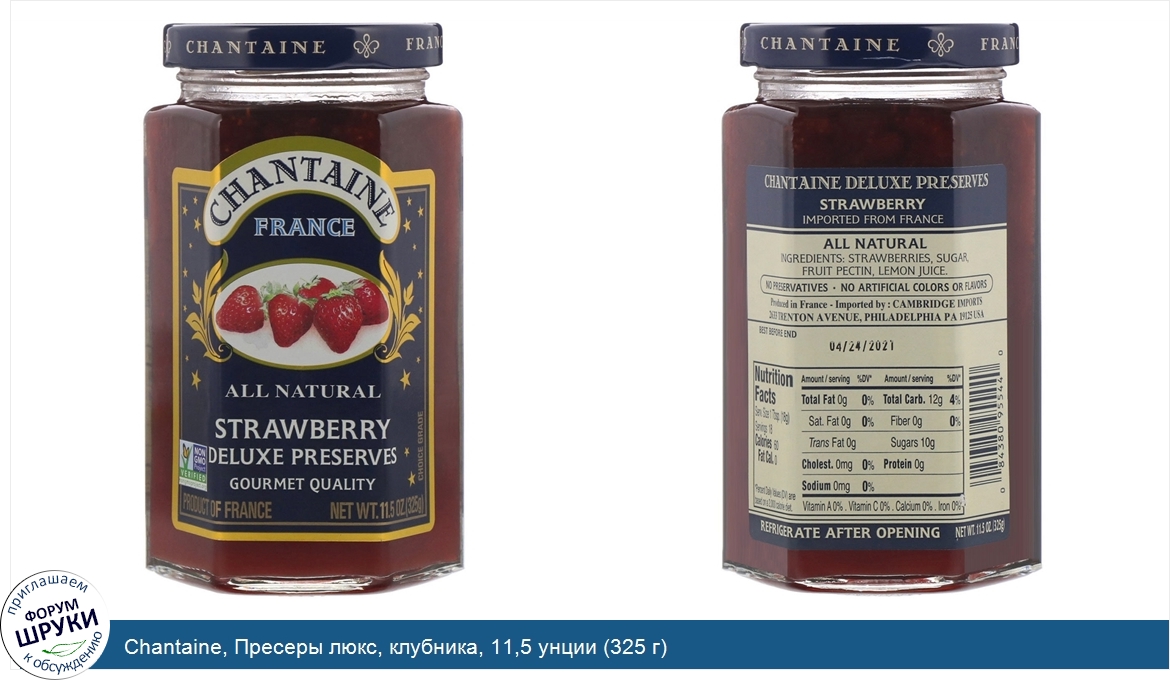 Друзья, если у вас есть отзыв/дополнение/комментарий/вопрос относительно Chantaine, Пресеры люкс, клубника, 11,5 унции (325 г) - напишите его ответом в эту тему (это будет полезно всему сообществу в целом и вам в отдельности).