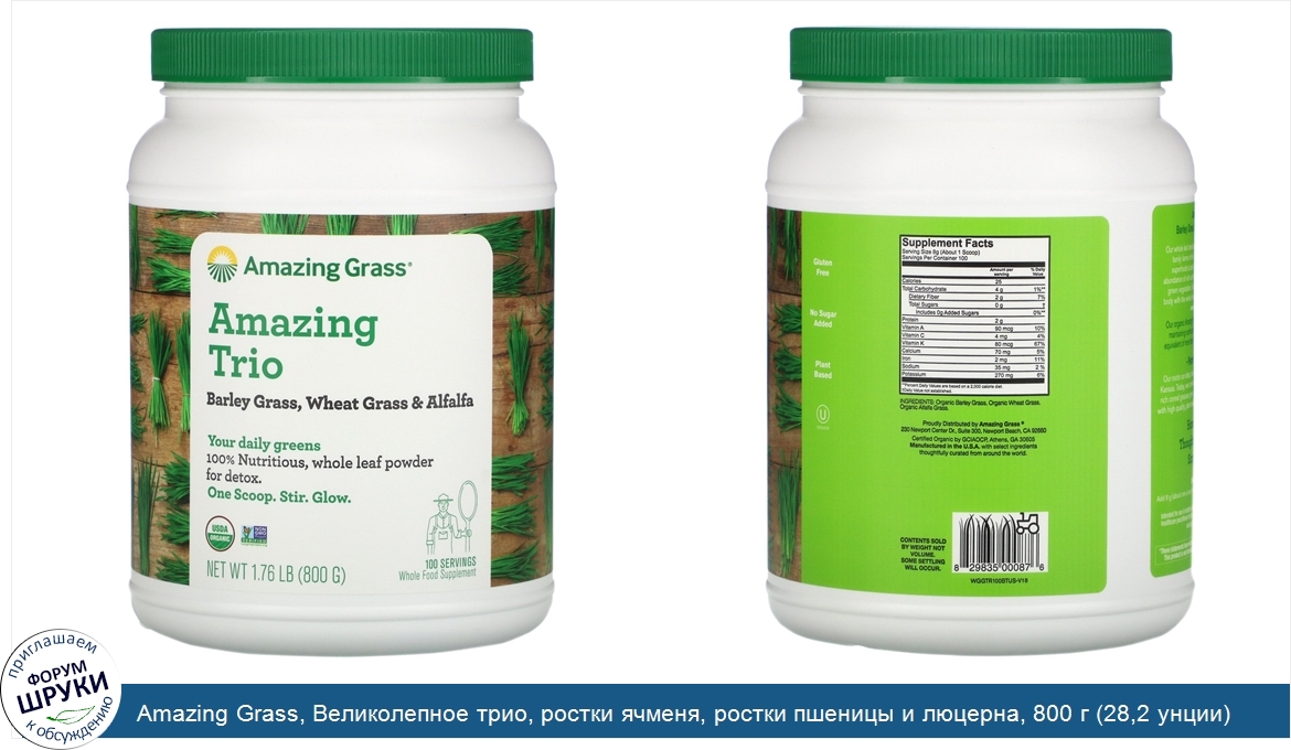 Amazing Grass, Великолепное трио, ростки ячменя, ростки пшеницы и люцерна, 800 г (28,2 унции)