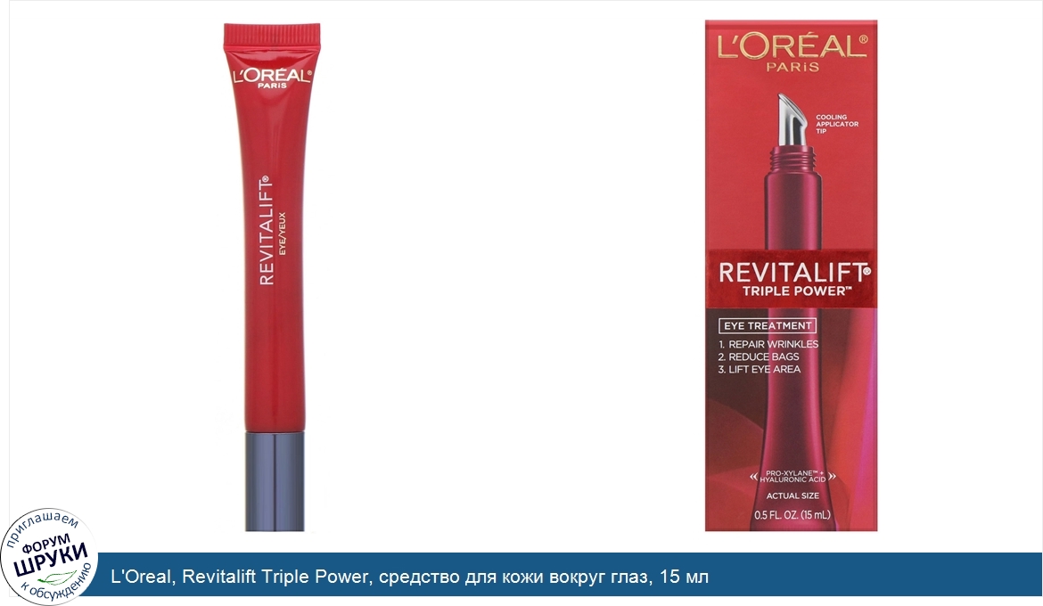 ru L'Oreal, Revitalift Triple Power, средство для кожи вокруг глаз, 15 мл