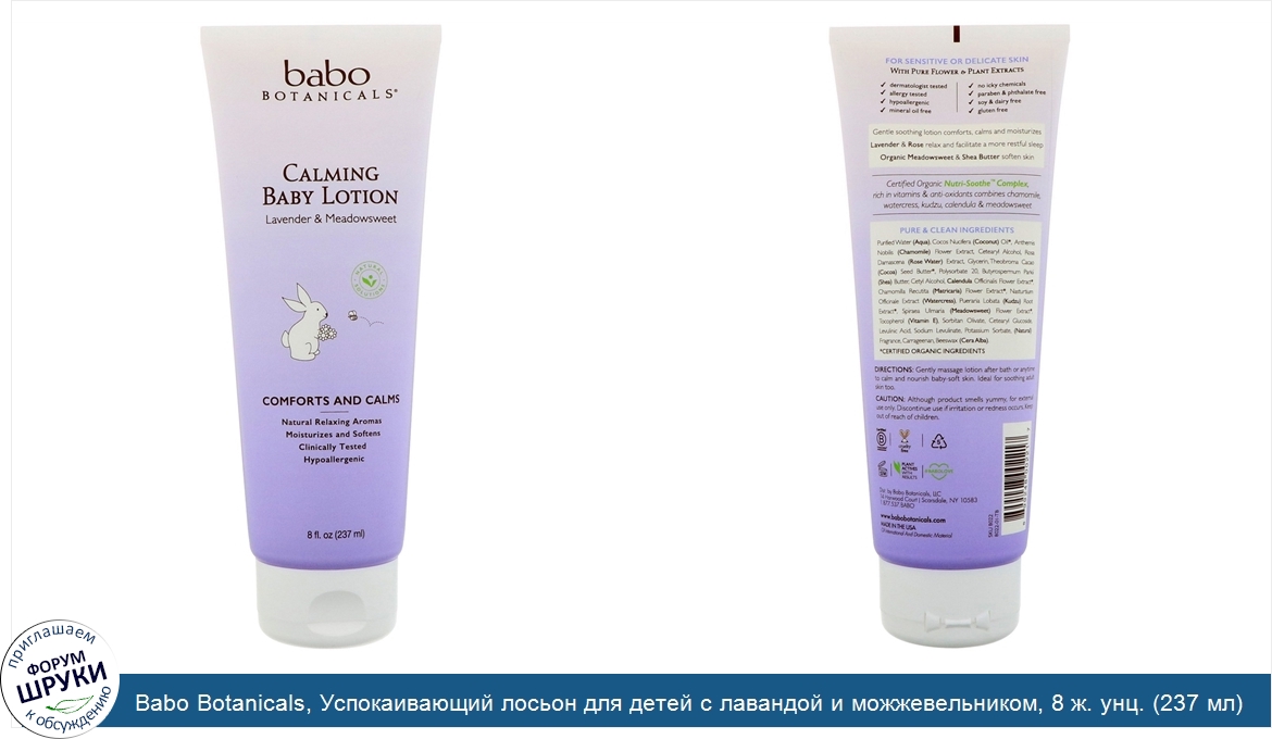 Друзья, если у вас есть отзыв/дополнение/комментарий/вопрос относительно Babo Botanicals, Успокаивающий лосьон для детей с лавандой и можжевельником, 8 ж. унц. (237 мл) - напишите его ответом в эту тему (это будет полезно всему сообществу в целом и вам в отдельности).