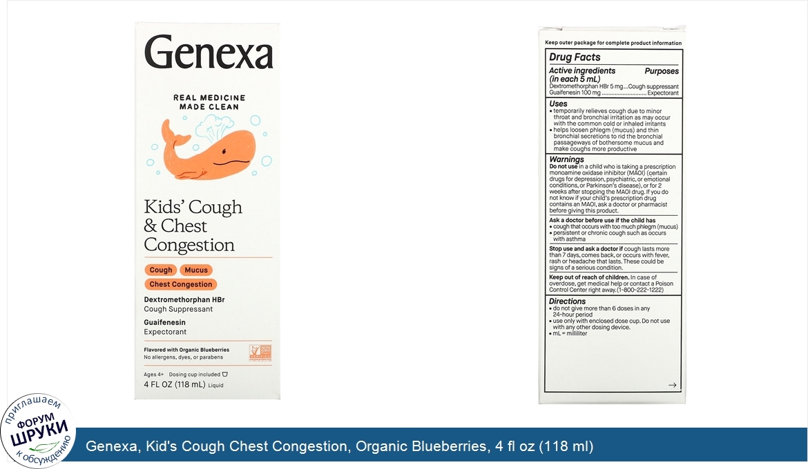Друзья, если у вас есть отзыв/дополнение/комментарий/вопрос относительно Genexa, Kid's Cough Chest Congestion, Organic Blueberries, 4 fl oz (118 ml) - напишите его ответом в эту тему (это будет полезно всему сообществу в целом и вам в отдельности).