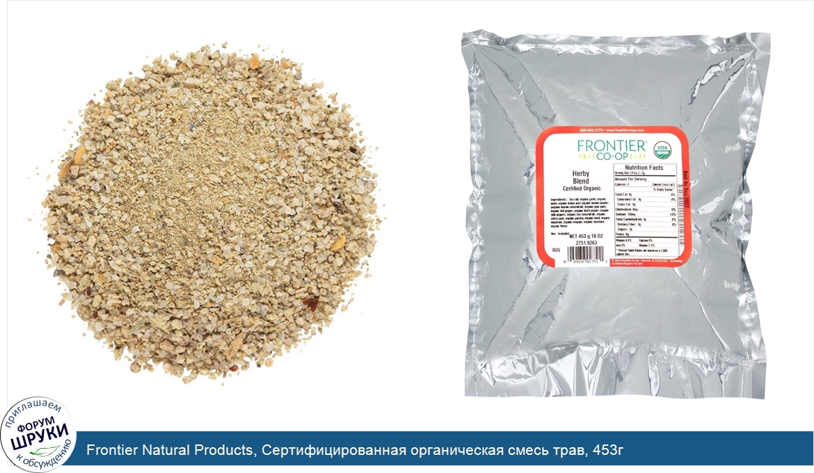 Друзья, если у вас есть отзыв/дополнение/комментарий/вопрос относительно Frontier Natural Products, Сертифицированная органическая смесь трав, 453г - напишите его ответом в эту тему (это будет полезно всему сообществу в целом и вам в отдельности).