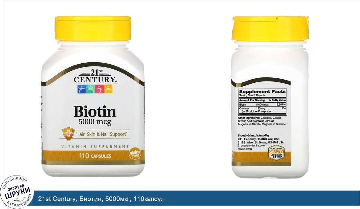 21st Century, Биотин, 5000мкг, 110капсул