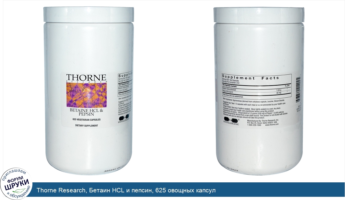 Друзья, если у вас есть отзыв/дополнение/комментарий/вопрос относительно Thorne Research, Бетаин HCL и пепсин, 625 овощных капсул - напишите его ответом в эту тему (это будет полезно всему сообществу в целом и вам в отдельности).