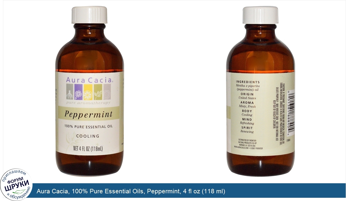 ru Aura Cacia, 100% Pure Essential Oils, Peppermint, 4 fl oz (118 ml)