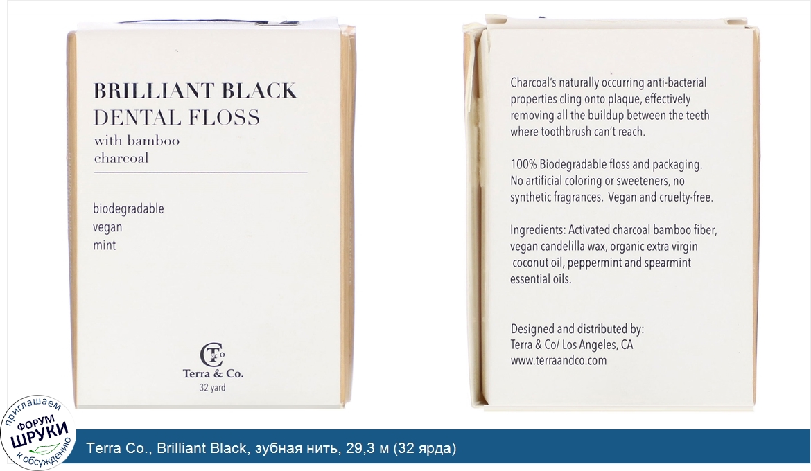 Terra Co., Brilliant Black, зубная нить, 29,3 м (32 ярда)