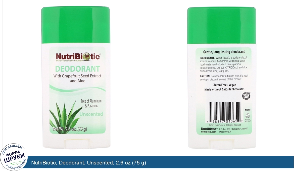 Друзья, если у вас есть отзыв/дополнение/комментарий/вопрос относительно NutriBiotic, Deodorant, Unscented, 2.6 oz (75 g) - напишите его ответом в эту тему (это будет полезно всему сообществу в целом и вам в отдельности).