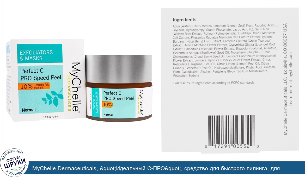 Друзья, если у вас есть отзыв/дополнение/комментарий/вопрос относительно MyChelle Dermaceuticals, "Идеальный C-ПРО", средство для быстрого пилинга, для нормальной кожи, 1,2 жидкой унции (35 мл) - напишите его ответом в эту тему (это будет полезно всему сообществу в целом и вам в отдельности).