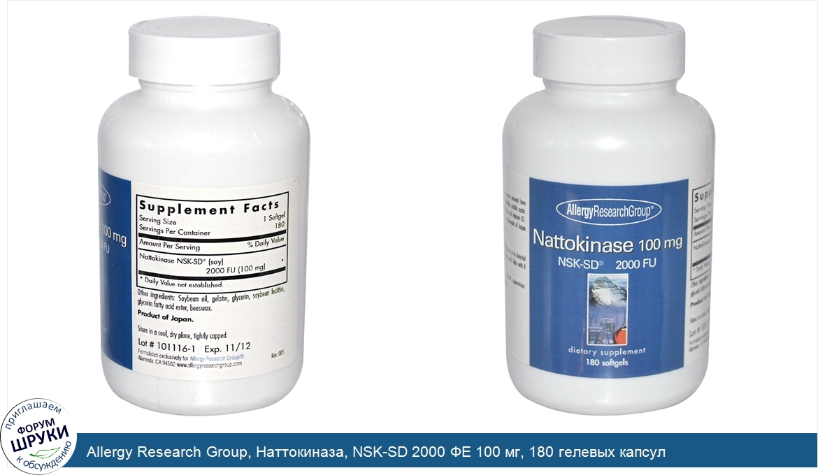 Друзья, если у вас есть отзыв/дополнение/комментарий/вопрос относительно Allergy Research Group, Наттокиназа, NSK-SD 2000 ФЕ 100 мг, 180 гелевых капсул - напишите его ответом в эту тему (это будет полезно всему сообществу в целом и вам в отдельности).