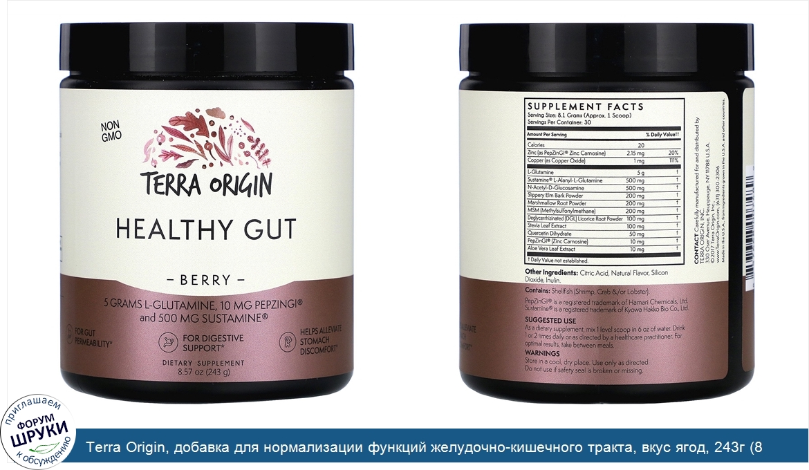 Друзья, если у вас есть отзыв/дополнение/комментарий/вопрос относительно Terra Origin, добавка для нормализации функций желудочно-кишечного тракта, вкус ягод, 243г (8,57 унции) - напишите его ответом в эту тему (это будет полезно всему сообществу в целом и вам в отдельности).