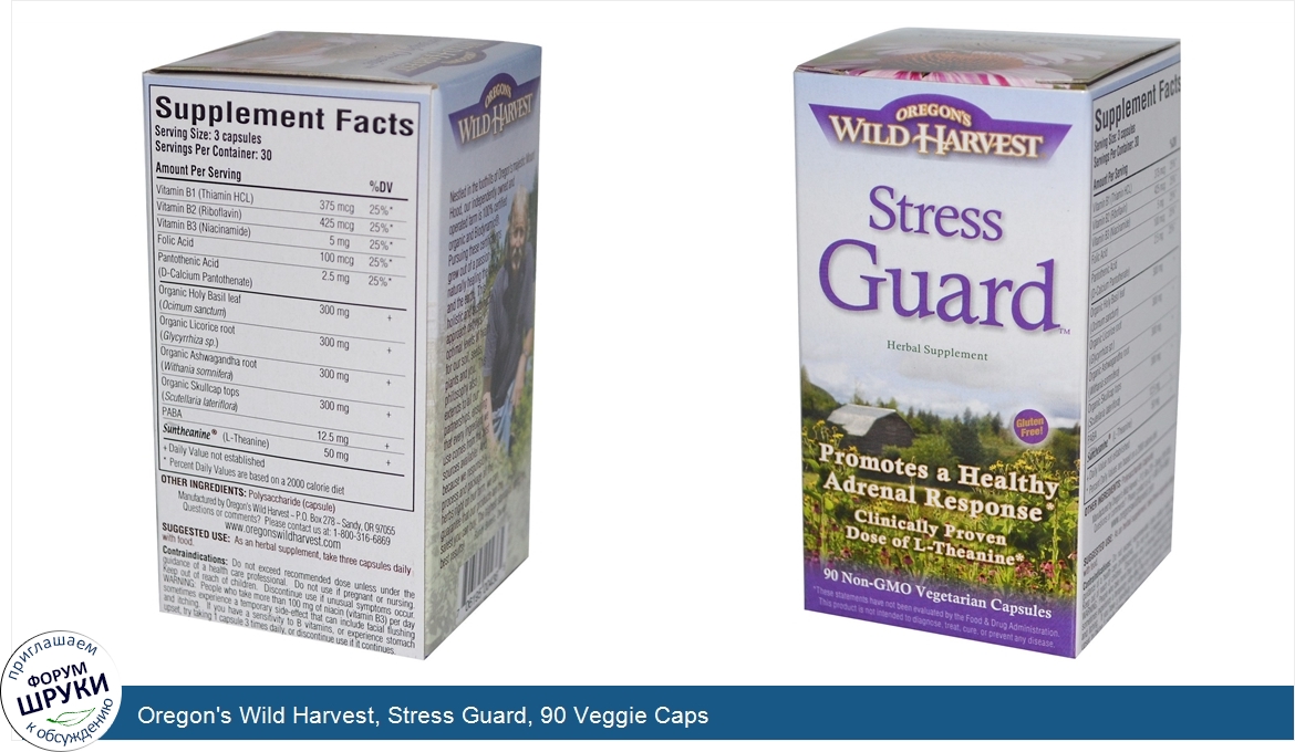 [DESCRIPT]Seriously Organic. Herbal Supplement. Gluten Free. Promotes a Healthy Adrenal Responses. Clinically Proven Dose of L-Theanine. 90 Non-GMO Vegetarian Capsules. Nestled in the foothills of Oregon's majestic Mount Hood, our independently owned and operated farm is 100% certified organic and Biodynamic. Pursuing these certifications grew out of a passion for naturally healing the body and the earth. This holistic and sustainable approach delivers optimal levels of health for our soil, seeds, plants and you. This philosophy also extends to all our partnerships, ensuring that every ingredient we use comes from the best sources available. And because we responsibly process and package all the herbs right on our farm, we can guarantee that our products are the safest you can buy. The highest standards equal the best results! . Randy Buresh, Owner. Value Chart. No chemical added during processing. Clinically proven dose of L-Theanine. Made by Certified Organic growers and manufacturers. 90 capsules per bottle. 3 capsules per serving = 1 month supply. Fatigue · Irritability · Sugar/Salt Cravings · Insomnia. Many people feel the physical effects of stress. Modern lifestyle, exposure to pathogens (germs) and environmental toxins all disturb the body's ability to cope - both physically and emotionally. Thankfully, Stress Guard contains clinically proven ingredients that can support us in three unique ways: . Organic blend of adaptogen herbs - such as Holy Basil, Ashwagandha and Licorice - all reduce the reaction to stress and restore balance to the interconnected hormonal, immune and nervous systems. L-Theanine and Organic Skullcap assist in relaxation and reduce anxious feelings without causing drowsiness. B-Vitamins support brain function and energy systems. Suntheanine. It is the only L-Theanine available that has proven clinical use and safety.[/DESCRIPT]... (описание дополняется)