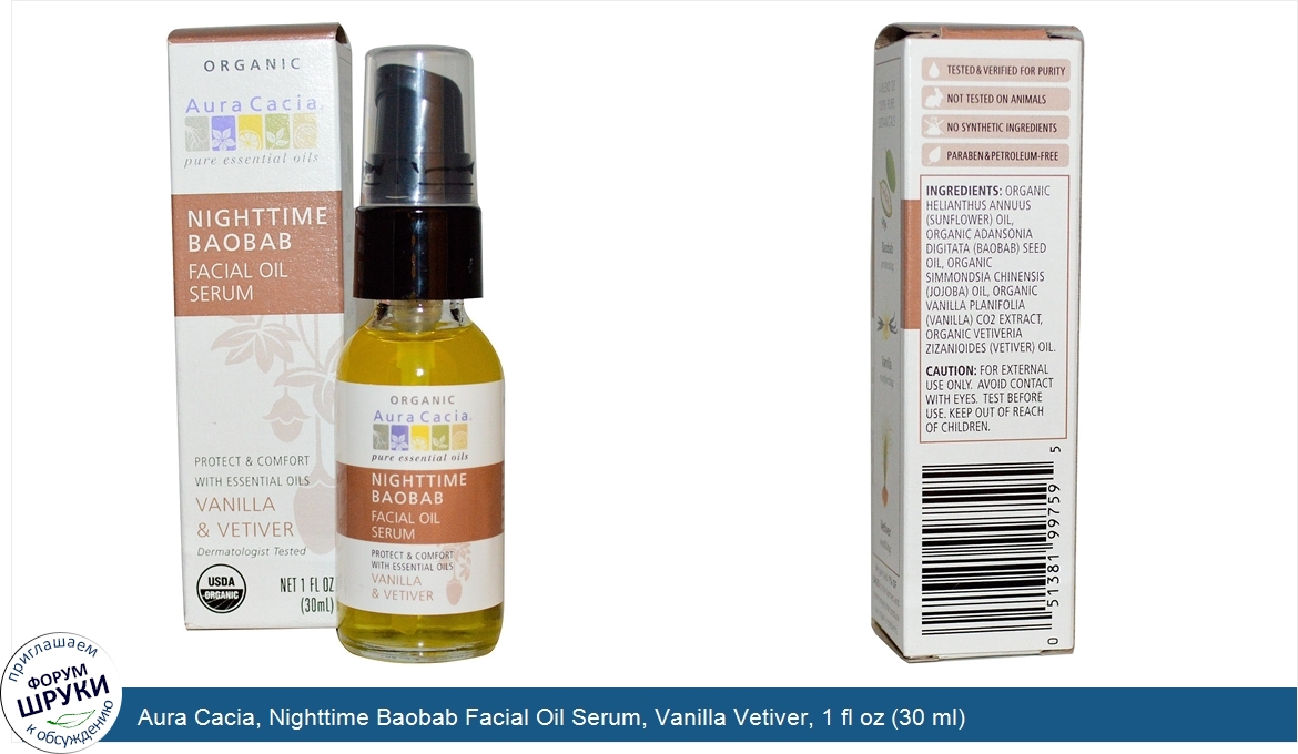 Друзья, если у вас есть отзыв/дополнение/комментарий/вопрос относительно Aura Cacia, Nighttime Baobab Facial Oil Serum, Vanilla Vetiver, 1 fl oz (30 ml) - напишите его ответом в эту тему (это будет полезно всему сообществу в целом и вам в отдельности).
