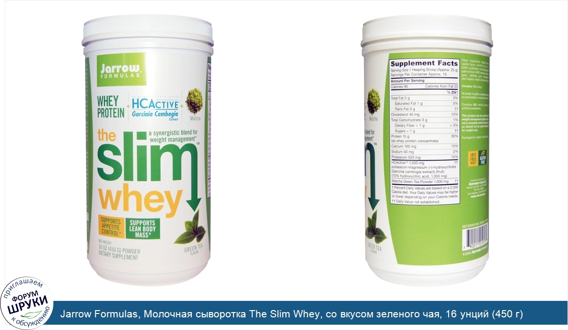 Jarrow Formulas, Молочная сыворотка The Slim Whey, со вкусом зеленого чая, 16 унций (450 г) порошок