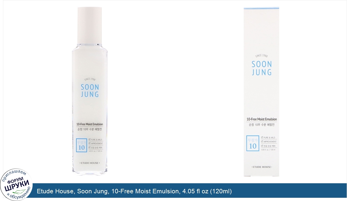 Друзья, если у вас есть отзыв/дополнение/комментарий/вопрос относительно Etude House, Soon Jung, 10-Free Moist Emulsion, 4.05 fl oz (120ml) - напишите его ответом в эту тему (это будет полезно всему сообществу в целом и вам в отдельности).