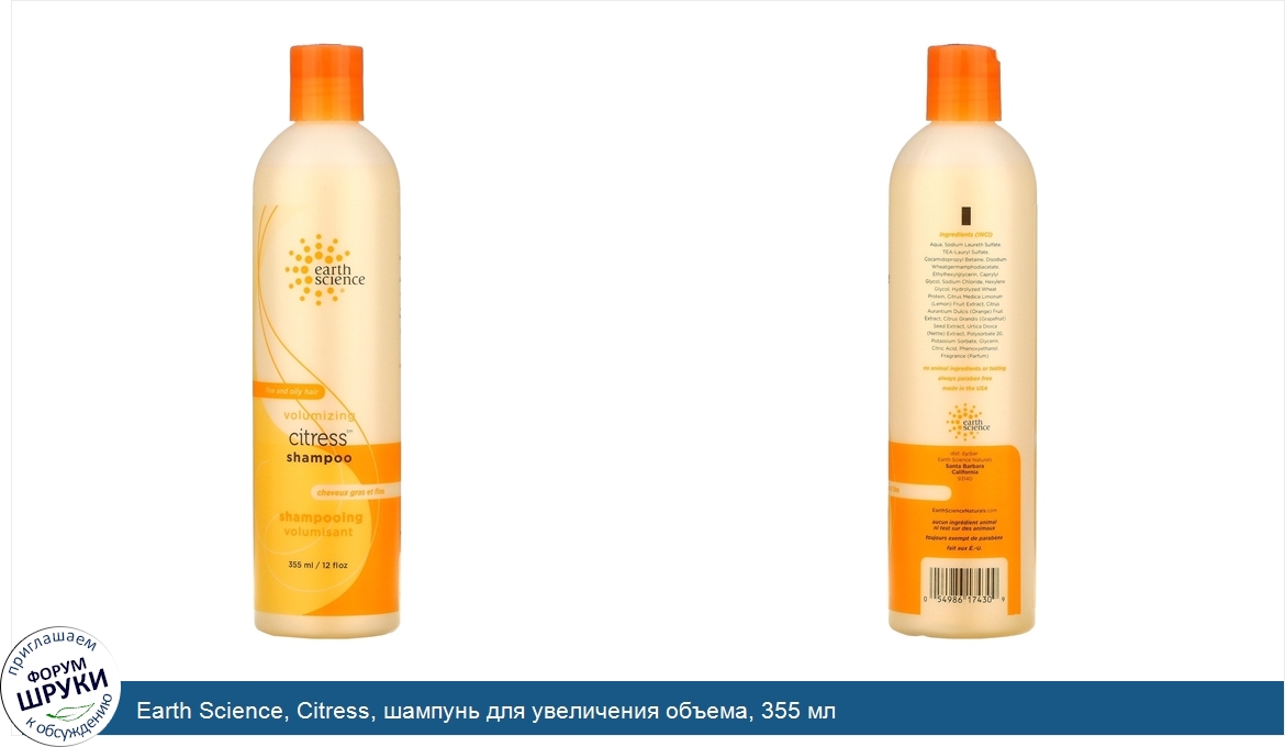 Друзья, если у вас есть отзыв/дополнение/комментарий/вопрос относительно Earth Science, Citress, шампунь для увеличения объема, 355 мл - напишите его ответом в эту тему (это будет полезно всему сообществу в целом и вам в отдельности).