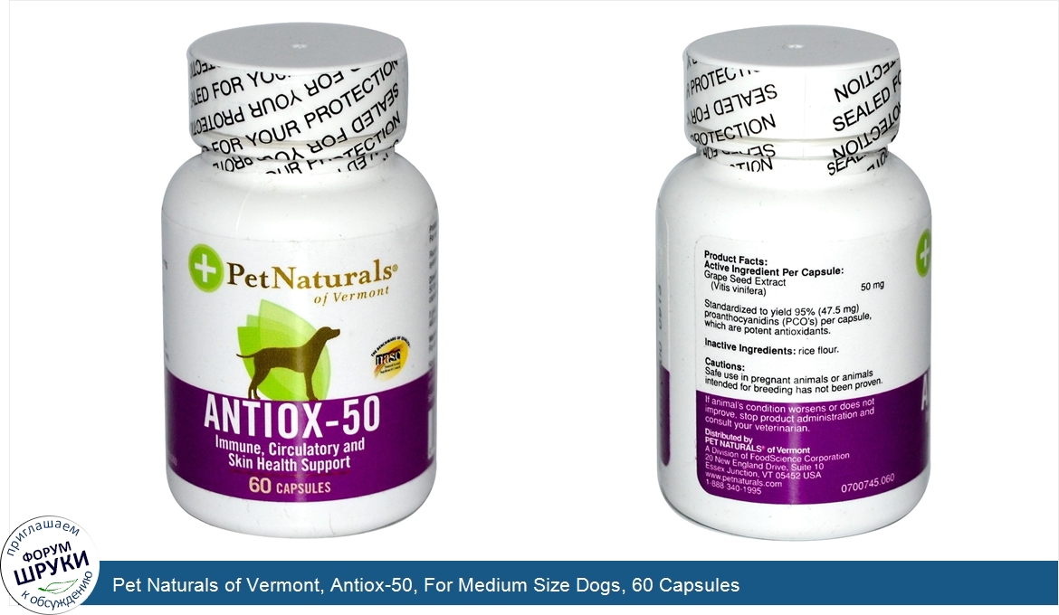 Друзья, если у вас есть отзыв/дополнение/комментарий/вопрос относительно Pet Naturals of Vermont, Antiox-50, For Medium Size Dogs, 60 Capsules - напишите его ответом в эту тему (это будет полезно всему сообществу в целом и вам в отдельности).