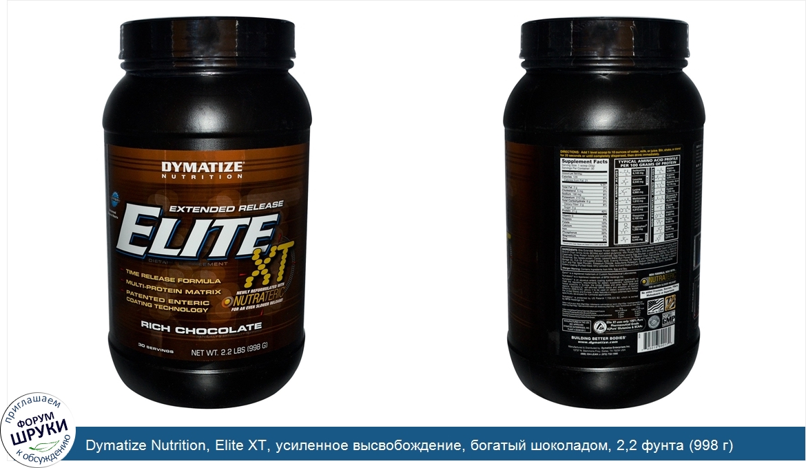 ru Dymatize Nutrition, Elite XT, усиленное высвобождение, богатый шоколадом, 2,2 фунта (998 г)