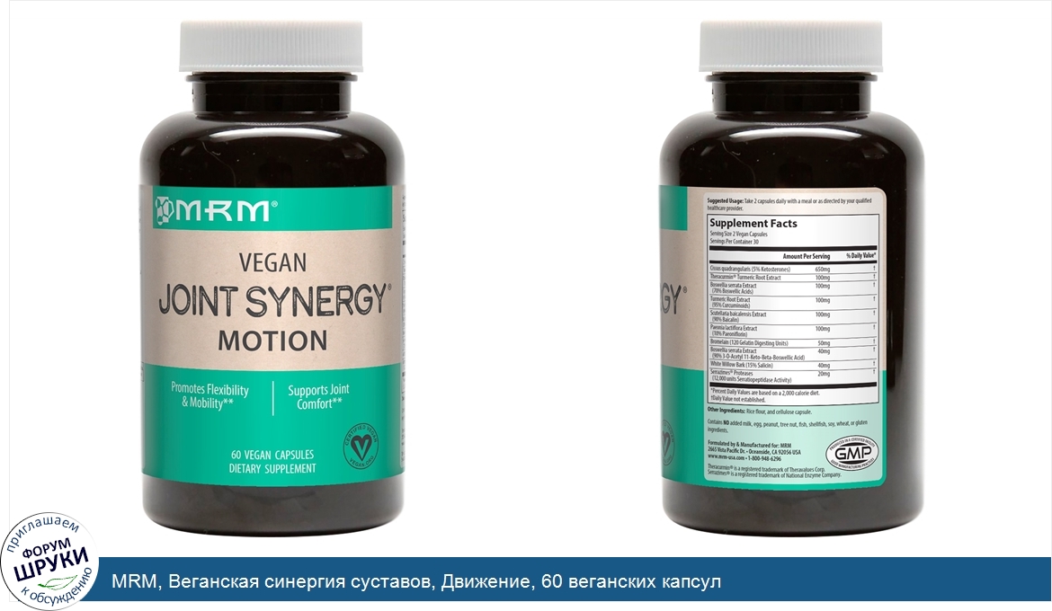 MRM, Веганская синергия суставов, Движение, 60 веганских капсул