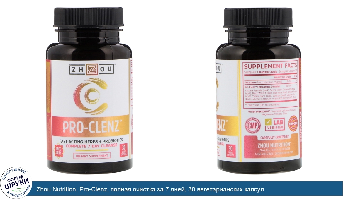 Друзья, если у вас есть отзыв/дополнение/комментарий/вопрос относительно Zhou Nutrition, Pro-Clenz, полная очистка за 7 дней, 30 вегетарианских капсул - напишите его ответом в эту тему (это будет полезно всему сообществу в целом и вам в отдельности).