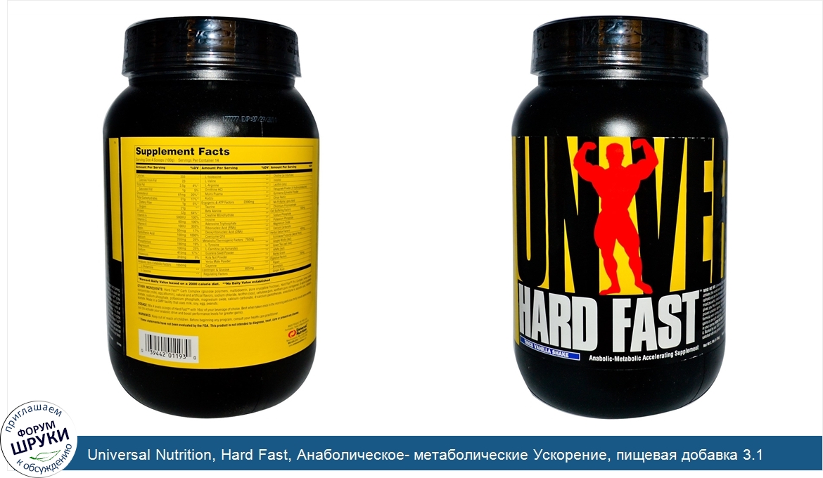 Universal Nutrition, Hard Fast, Анаболическое- метаболические Ускорение, пищевая добавка 3.1 фунтов (1.41 кг)