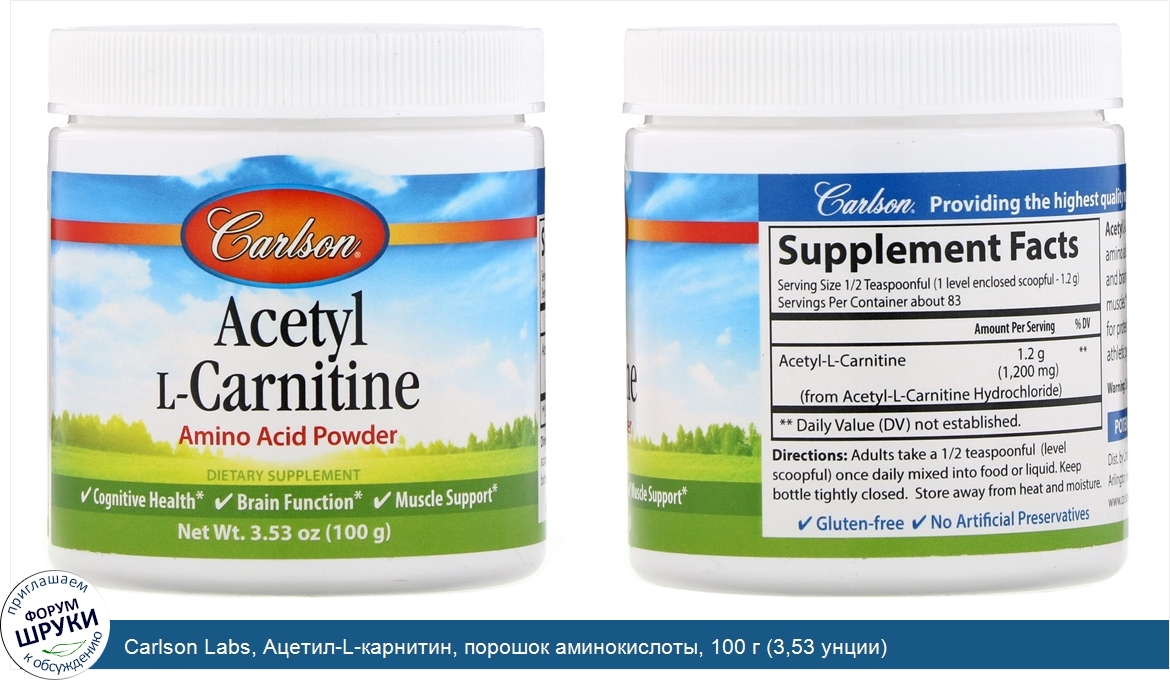 Друзья, если у вас есть отзыв/дополнение/комментарий/вопрос относительно Carlson Labs, Ацетил-L-карнитин, порошок аминокислоты, 100 г (3,53 унции) - напишите его ответом в эту тему (это будет полезно всему сообществу в целом и вам в отдельности).