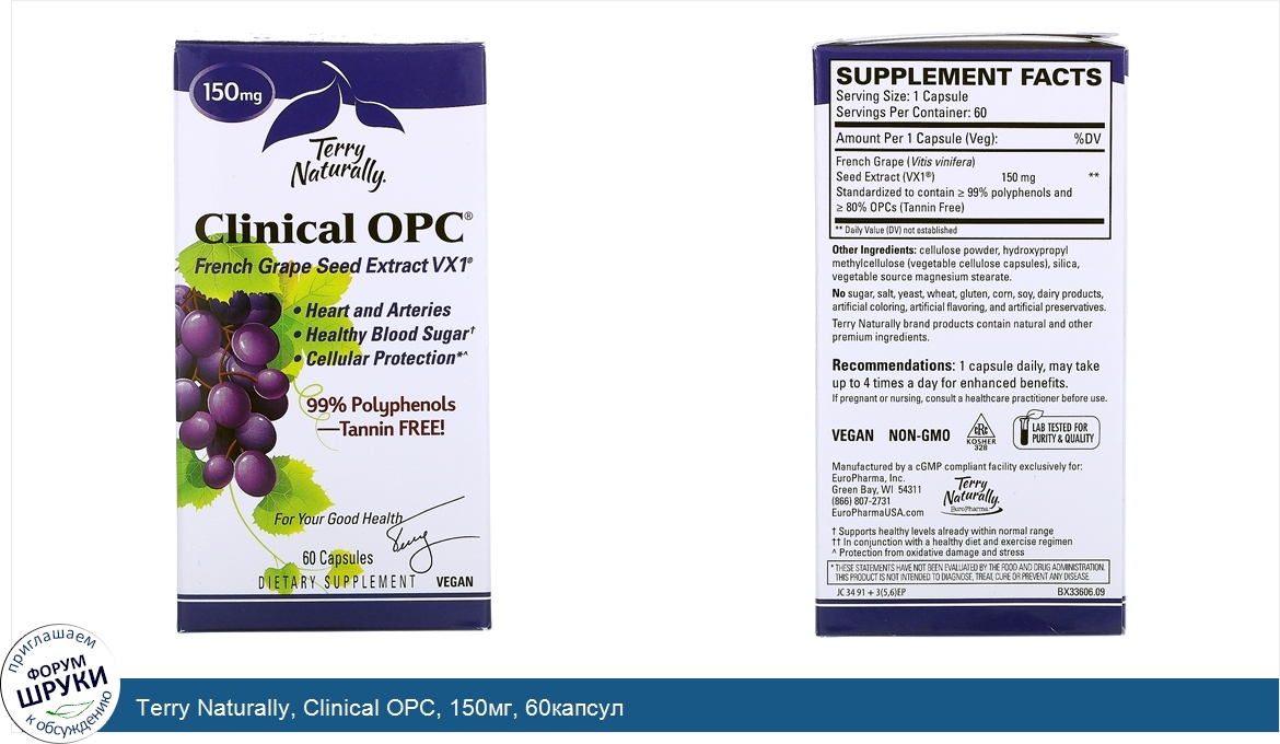 Terry Naturally, Clinical OPC, 150мг, 60капсул