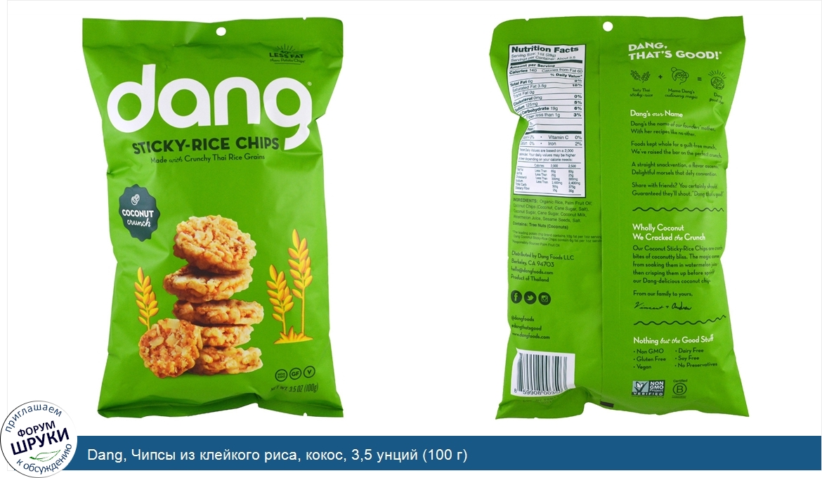 Друзья, если у вас есть отзыв/дополнение/комментарий/вопрос относительно Dang, Чипсы из клейкого риса, кокос, 3,5 унций (100 г) - напишите его ответом в эту тему (это будет полезно всему сообществу в целом и вам в отдельности).