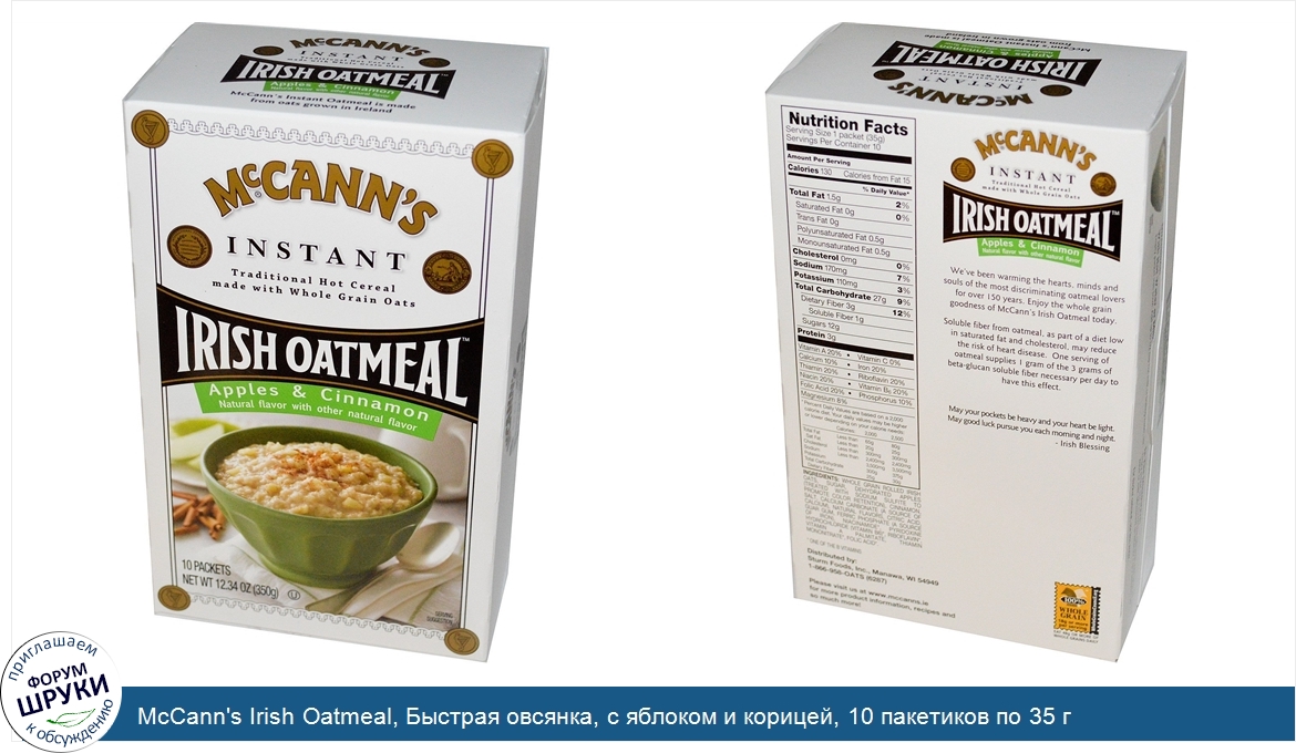 Друзья, если у вас есть отзыв/дополнение/комментарий/вопрос относительно McCann's Irish Oatmeal, Быстрая овсянка, с яблоком и корицей, 10 пакетиков по 35 г - напишите его ответом в эту тему (это будет полезно всему сообществу в целом и вам в отдельности).