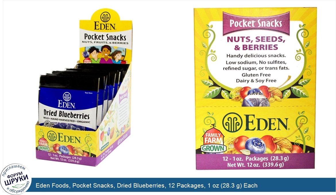 Друзья, если у вас есть отзыв/дополнение/комментарий/вопрос относительно Eden Foods, Pocket Snacks, Dried Blueberries, 12 Packages, 1 oz (28.3 g) Each - напишите его ответом в эту тему (это будет полезно всему сообществу в целом и вам в отдельности).