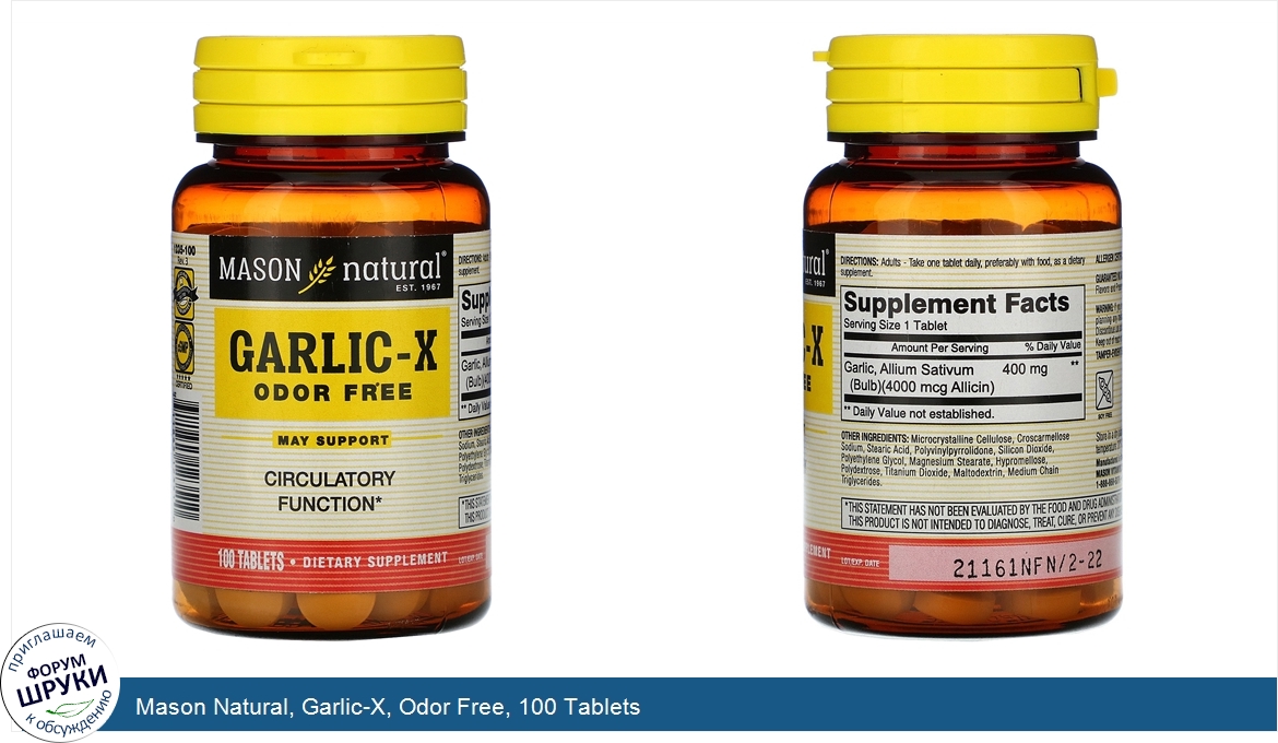 Mason Natural, Garlic-X, Odor Free, 100 Tablets