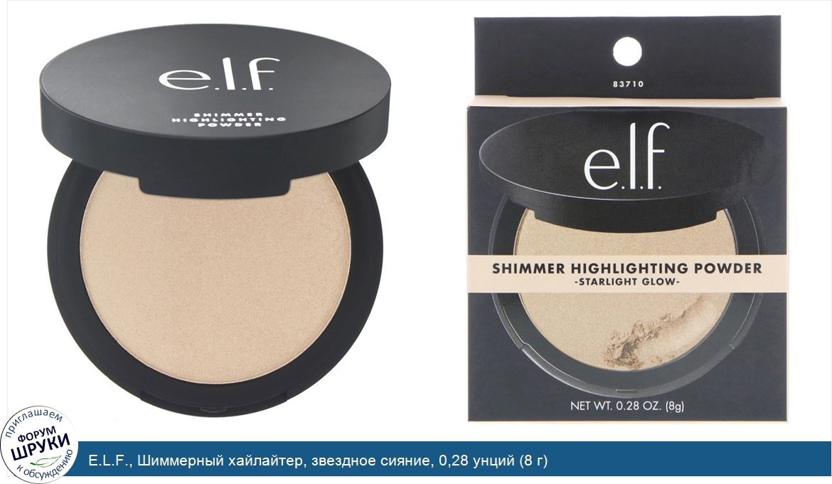Друзья, если у вас есть отзыв/дополнение/комментарий/вопрос относительно E.L.F., Шиммерный хайлайтер, звездное сияние, 0,28 унций (8 г) - напишите его ответом в эту тему (это будет полезно всему сообществу в целом и вам в отдельности).