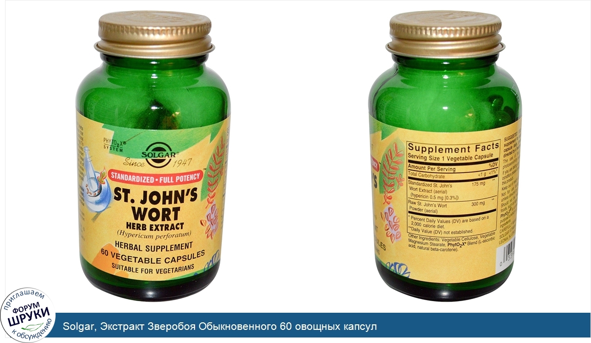 Solgar, Экстракт Зверобоя Обыкновенного 60 овощных капсул
