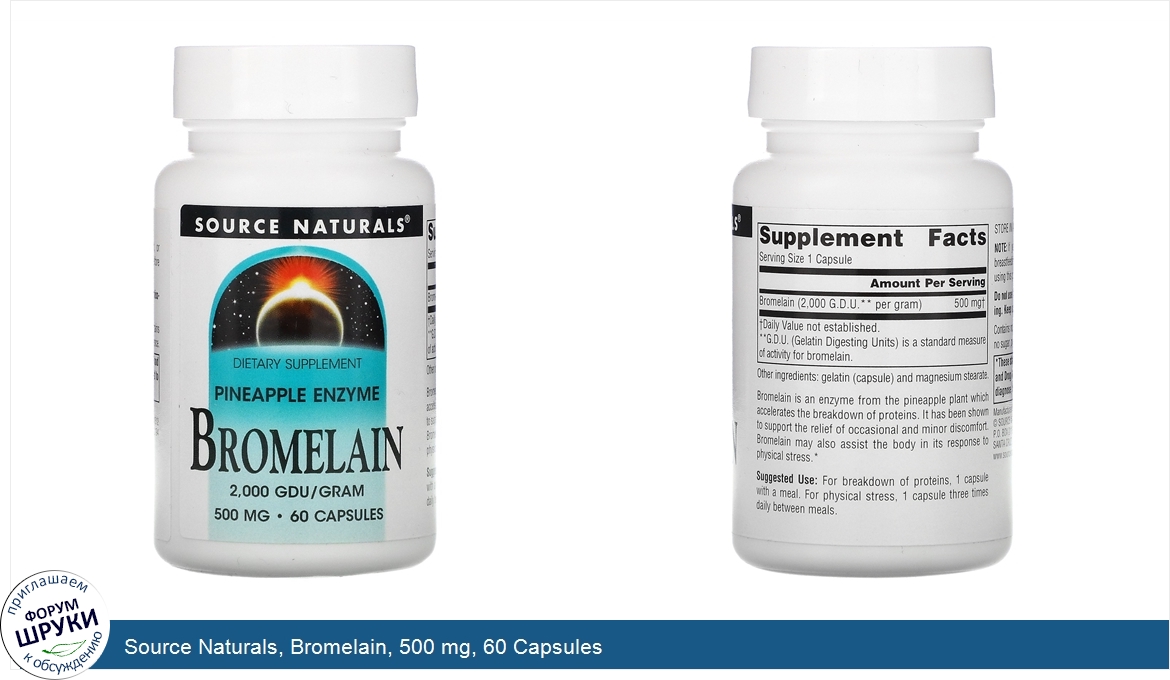 Друзья, если у вас есть отзыв/дополнение/комментарий/вопрос относительно Source Naturals, Bromelain, 500 mg, 60 Capsules - напишите его ответом в эту тему (это будет полезно всему сообществу в целом и вам в отдельности).