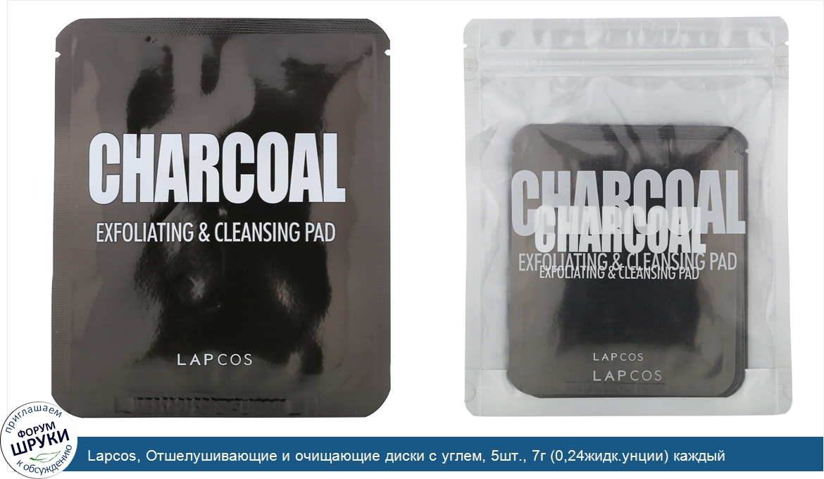 Друзья, если у вас есть отзыв/дополнение/комментарий/вопрос относительно Lapcos, Отшелушивающие и очищающие диски с углем, 5шт., 7г (0,24жидк.унции) каждый - напишите его ответом в эту тему (это будет полезно всему сообществу в целом и вам в отдельности).