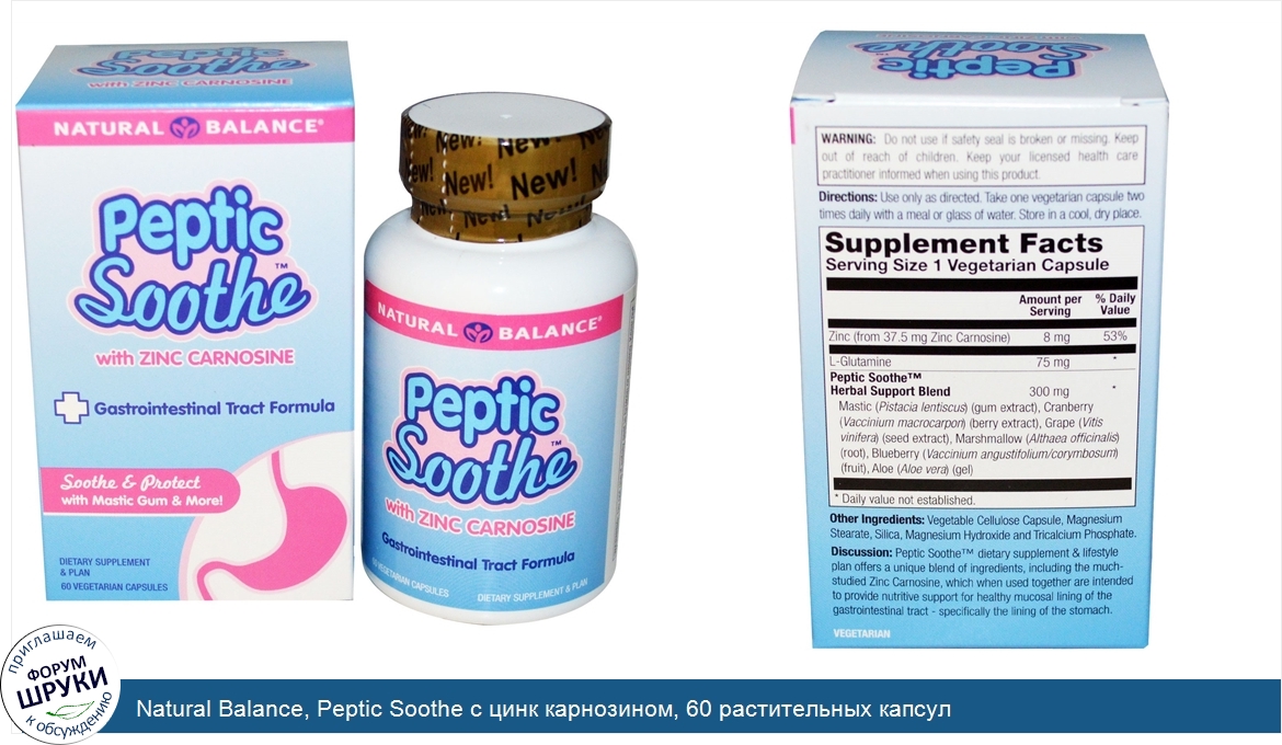 Друзья, если у вас есть отзыв/дополнение/комментарий/вопрос относительно Natural Balance, Peptic Soothe с цинк карнозином, 60 растительных капсул - напишите его ответом в эту тему (это будет полезно всему сообществу в целом и вам в отдельности).