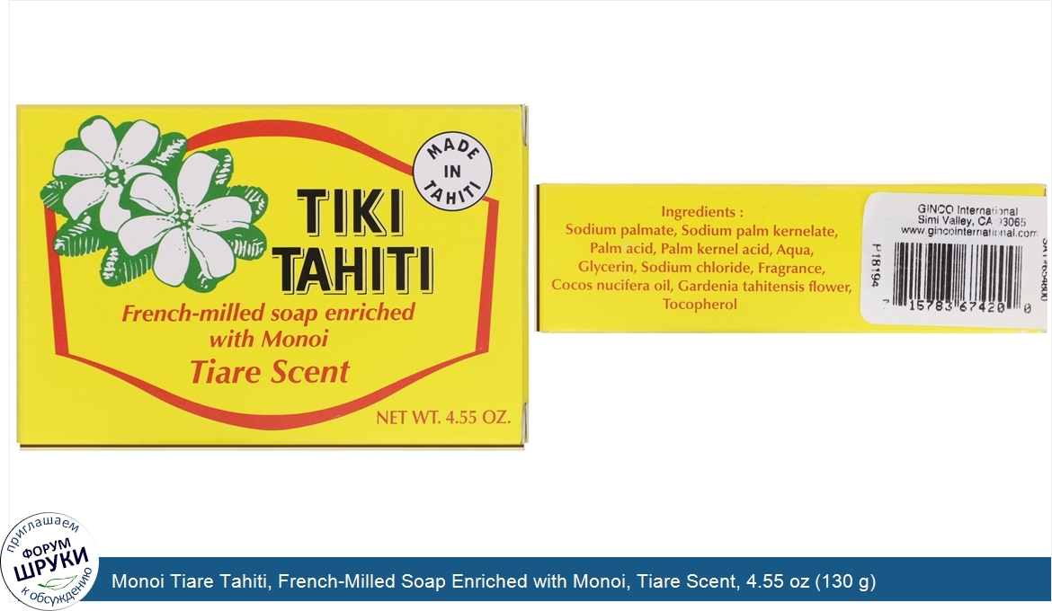 Друзья, если у вас есть отзыв/дополнение/комментарий/вопрос относительно Monoi Tiare Tahiti, French-Milled Soap Enriched with Monoi, Tiare Scent, 4.55 oz (130 g) - напишите его ответом в эту тему (это будет полезно всему сообществу в целом и вам в отдельности).