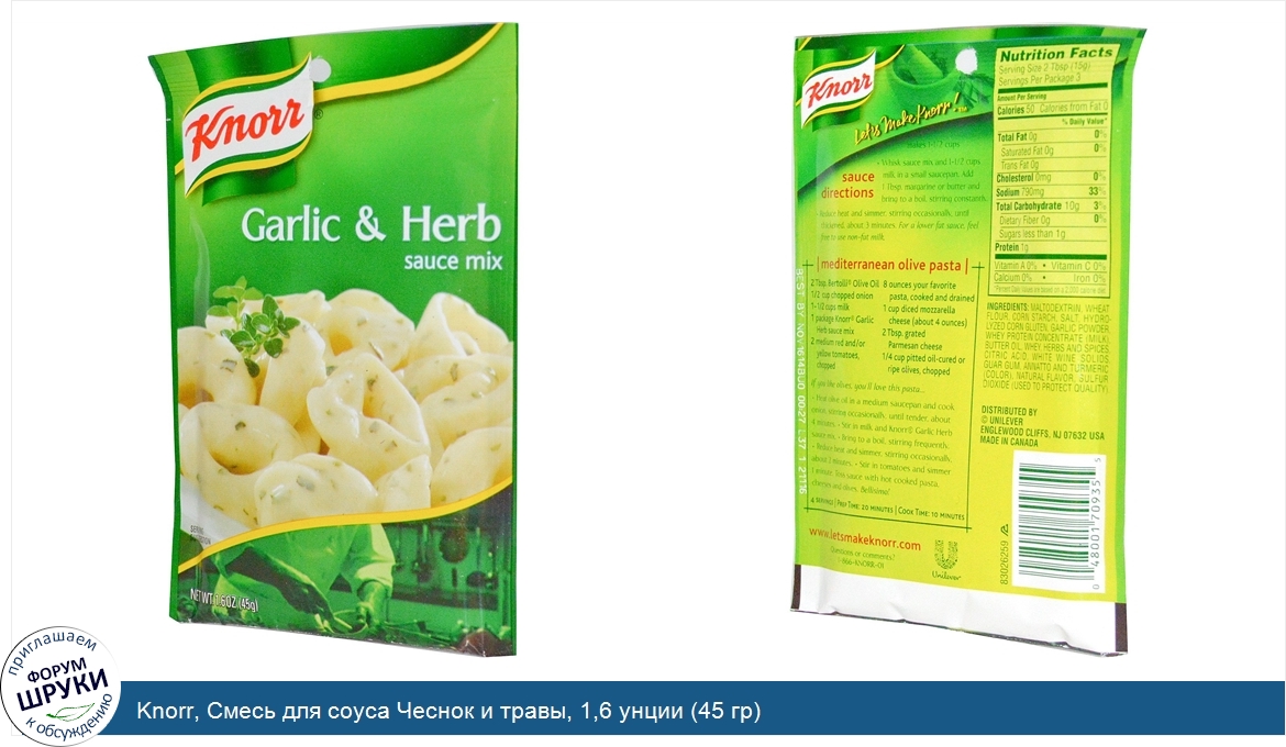 ru Knorr, Смесь для соуса Чеснок и травы, 1,6 унции (45 гр)